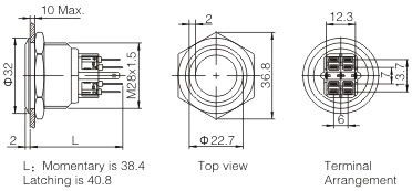 | Коммутация | Za (двойной переключающий контакт) | Материал | кнопка | нержавеющая сталь | |