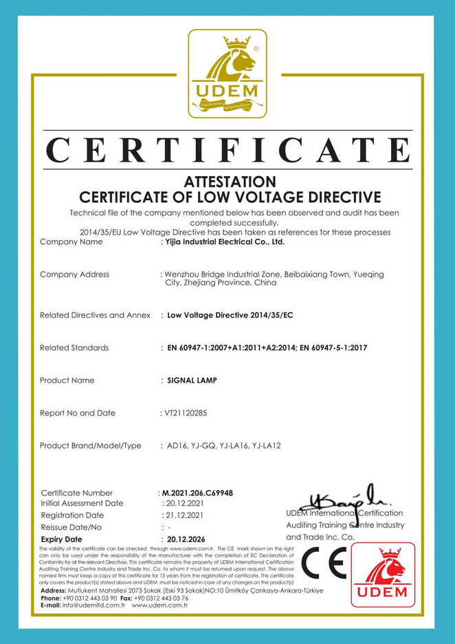 Сертификаты на продукцию компании Yijia Induitrial Electrical Co.: